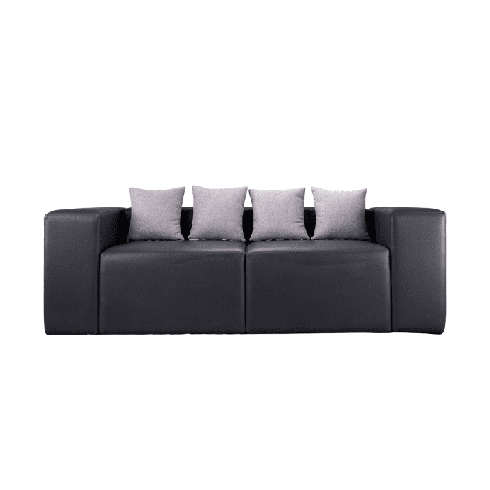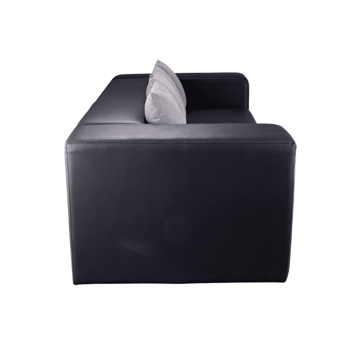 انتريه مكتب جلد أسود هى قطعة أساسية لأي مساحة عمل تبحث عن التميز . بلون أسود كلاسيكي، الانتريه مغطى بجلد صناعي عالي الجودة, وذراعين جانبيين, وأربع وسائد باللون الرمادي لتوفير الدعم المطلوب أثناء الجلوس.