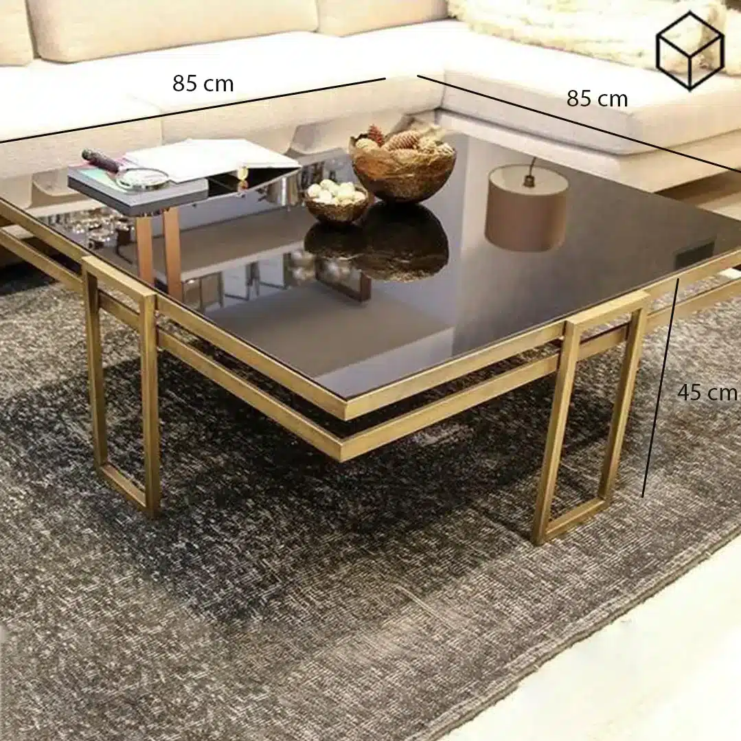 ترابيزة حديد بتصميم ايطالي للانتريه تتميز بسطحها الزجاجي الفخم وهيكلها الذهبي اللامع يجعلها إضافة رائعة لغرفة الانتريه. وبفضل أبعادها الممتازة 85 سم في 85 سم وارتفاعها 45 سم عن الأرض فهي توفر مساحة كافية لوضع الكتب أو لتقديم الشاي والقهوة للضيوف وتصميم الأرجل المبتكر يمنحها ثبات وقوة يعزز من وظيفتها.