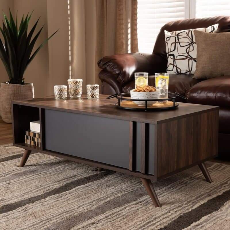 ترابيزة ضيافة خشب بني مزودة بمساحة تخزين