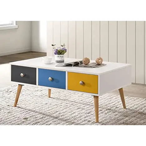 تتميز طاولة القهوة بتصميم أنيق وفريد يتماشى مع الاتجاه الحديث لتصميم الأثاث حيث تتضمن مساحة سطح ممتازة وثلاثة أدراج ملونة للتخزين يمكن الاستفادة منها بطرق متنوعة، والتي تجعل منها الترابيزة المثالية في العديد من الأماكن.