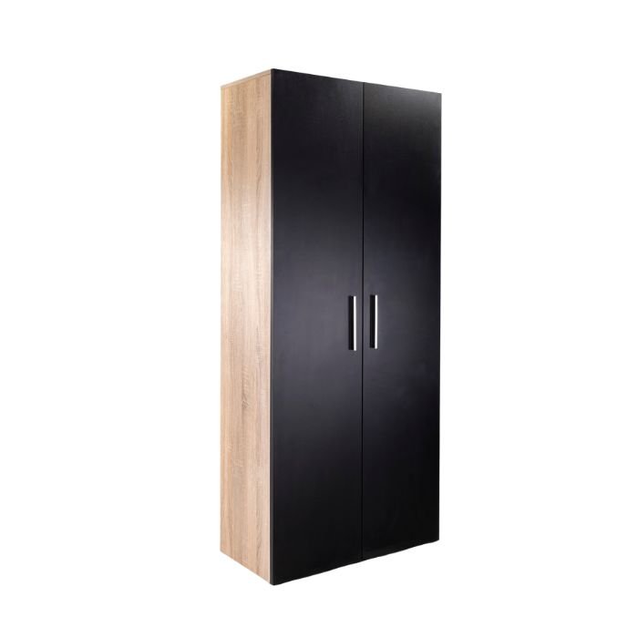 - لون دولاب التخزين: هيكل الدولاب بالكامل باللون البني الراقي مع تطعيمه بتأثيرات درجات ألوان الخشب الطبيعي الرائعة والأبواب من اللون الأسود ملك الألوان والمقابض من المعدن اللامع في مزيج عصري قدم لنا شكلاً نهائياً أنيق ومتميز.