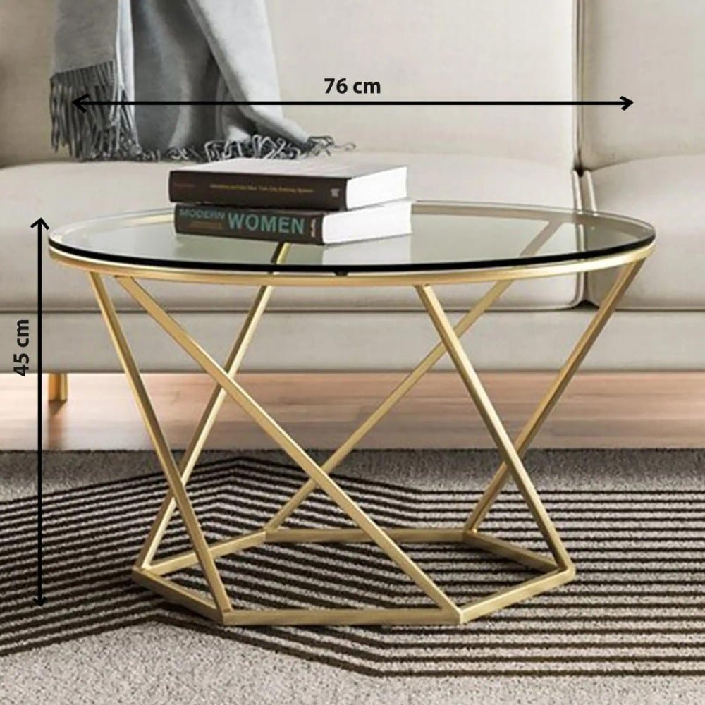 طاولة قهوة دائرية بسطح زجاج وقاعدة من المعدن