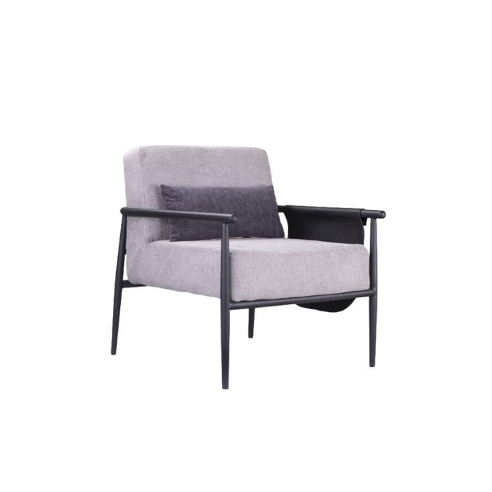 تم تصميم هيكل الكرسي من المعدن القوي المطلي إلكتروستاتيك باللون الأسود الذي يعزز من فخامة الكرسي، مع تنجيد الكرسي من القماش الممتاز سهل التنظيف باللون الرمادي الأنيق المتناغم مع اللون الأسود مما يزيد من جمالية المكان المحيط.