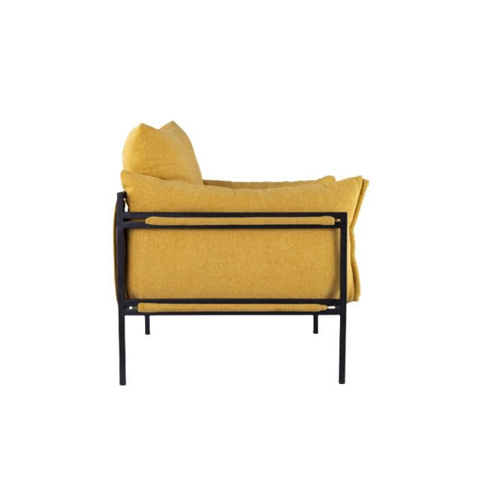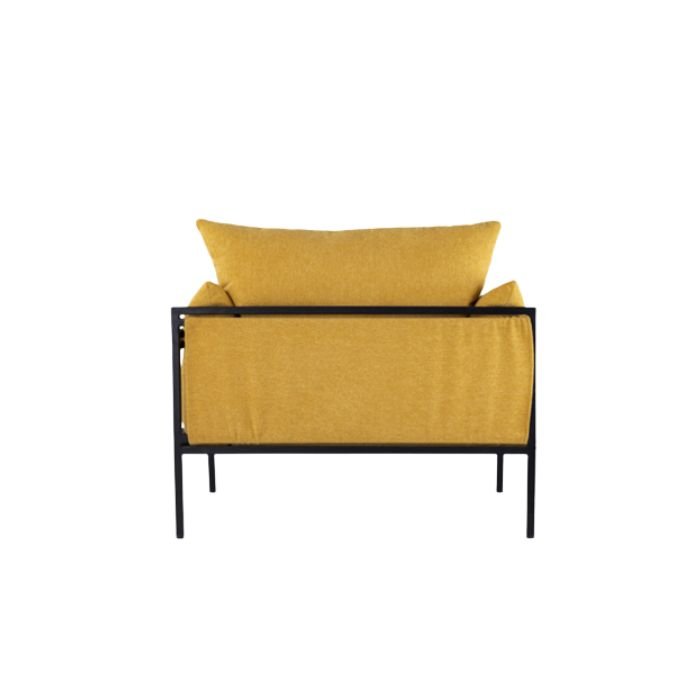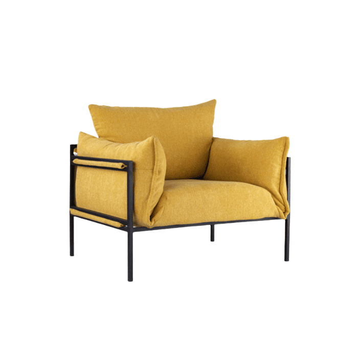 كرسي انتريه مودرن أصفر، بإطار معدني قوي, اسفنج عالي الكثافة, ووسائد قماشية. الكرسي مثالي للصالونات العصرية وغرف النوم أو المكاتب المنزلية.