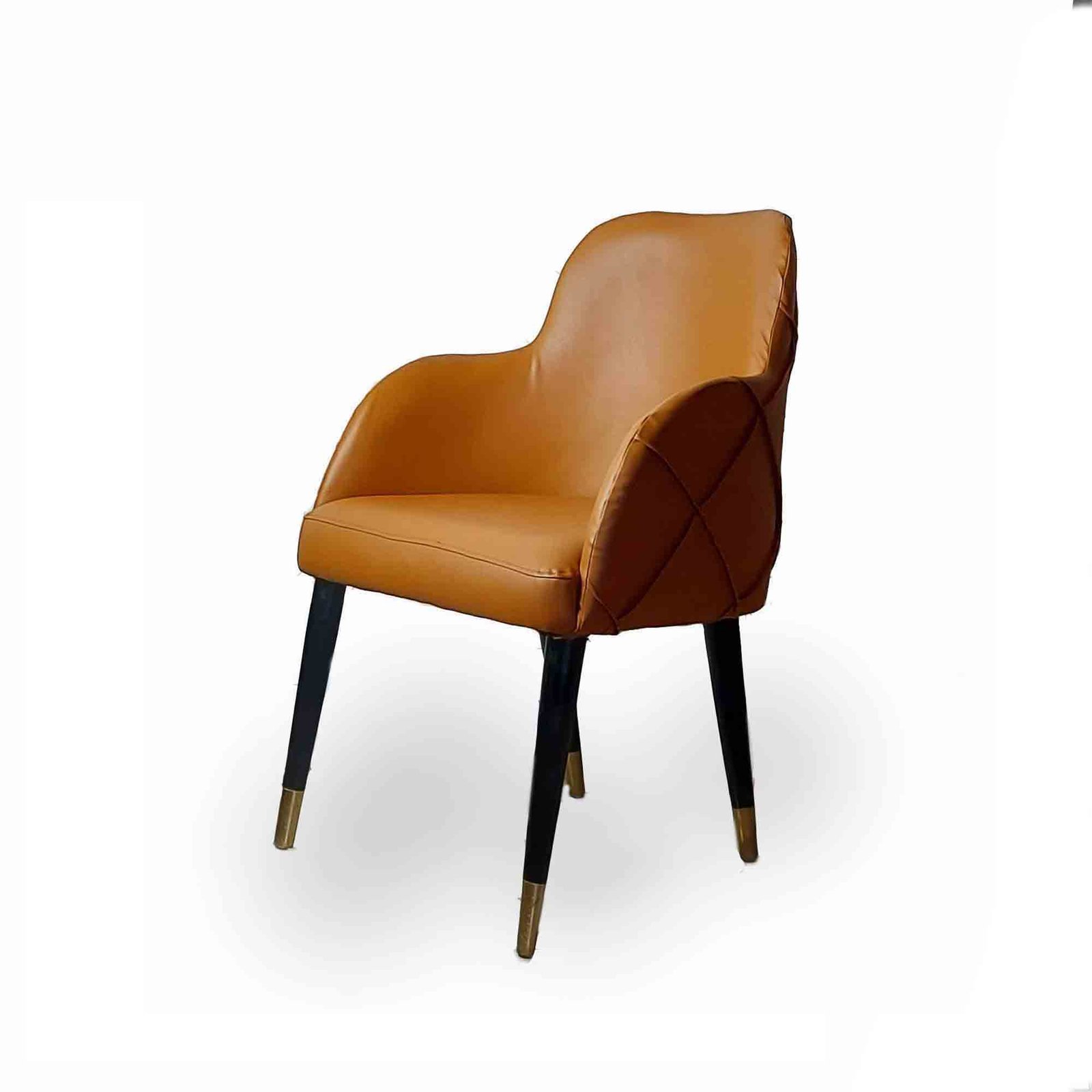 كرسي سفرة جلد بني بتصميم عصري أنيق