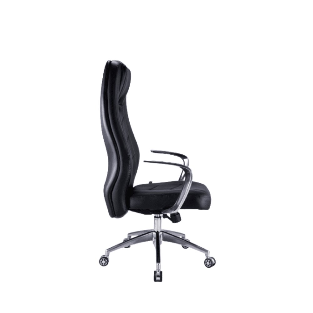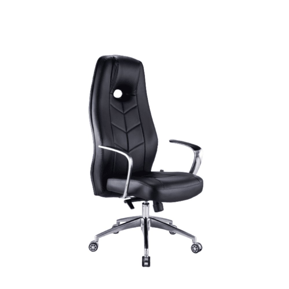 تصميم الكرسي: تم تصميم الكرسي بظهر عالي حتى الرأس و تفاصيل مميزة تساعد في توفير أقصى درجات الراحة ولا تسبب ارهاق للجسم أثناء العمل.