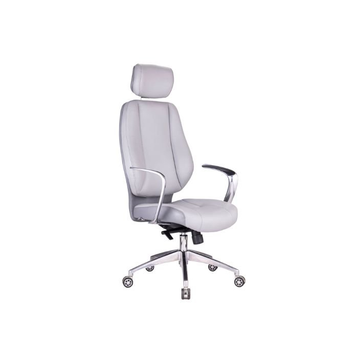كرسي مدير متحرك جلد رمادي بتصميم متميز