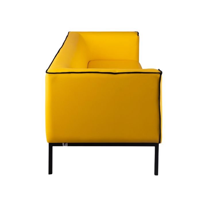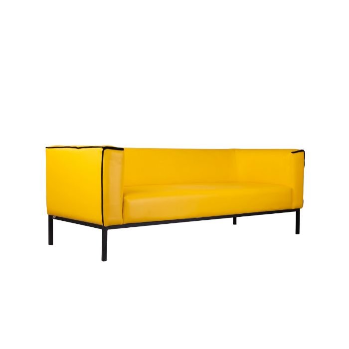 - قماش التنجيد الخارجي: تم اختيار أفضل أنواع أقمشة التنجيد لفرش الكنبة والذي يتميز بسهولة التنظيف في تحمل الاستخدام اليومي المستمر بما يضمن الحفاظ على رونق الكنبة وأناقتها طوال الوقت، لون الكنبة أصفر ذو درجة لون مبهجة مع تزيين بشريط من اللون الأسود ليزيد من جمال الكنة وأناقتها.