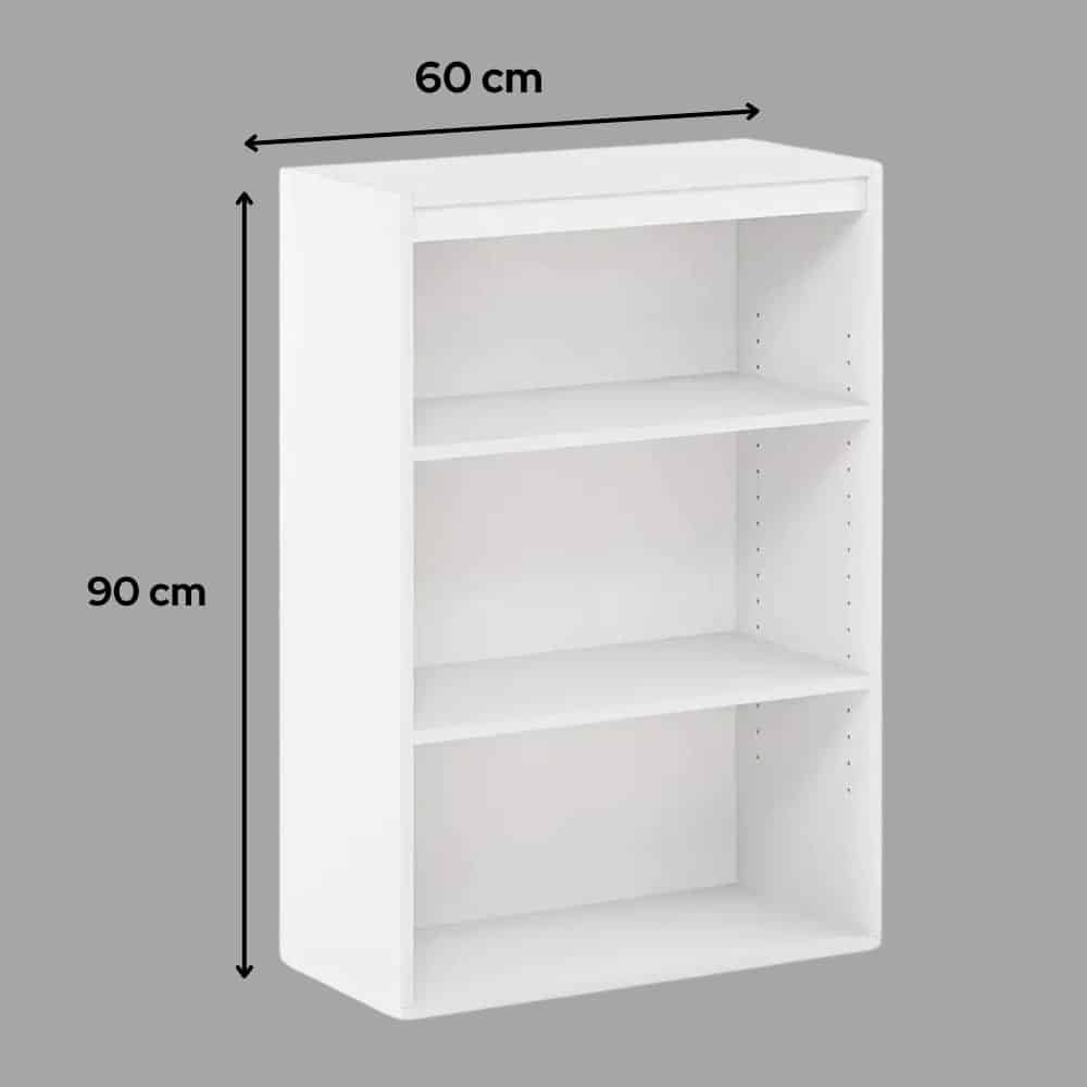 الأبعاد: تتكون المكتبة من مستطيل من أجود أنواع الأخشاب بمقاس 60 سم عرض في 90 سم طول وعمق 30 سم، وهذا المقاس يجعلها صالحة للاستخدام في المكاتب والشركات لتنظيم الملفات، وكذلك في المنازل لترتيب الكتب بجميع أنواعها.