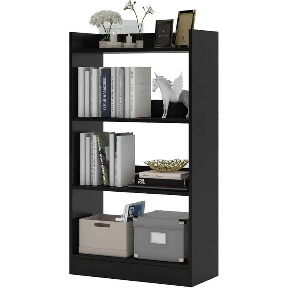 مكتبة خشب للكتب 4 رفوف هي الحل المثالي لتنظيم وعرض الكتب والديكورات والأشياء الأخرى في المنزل أو المكتب. يمكنك استخدام الأرفف المختلفة لعرض الكتب والتحف والأواني الزخرفية لإضافة لمحة من الجمال على المكان المحيط باللون الأسود ملك الألوان والذي يتناسب مع كافة ألوان الديكورات الأخرى بل يزيد فخامتها.