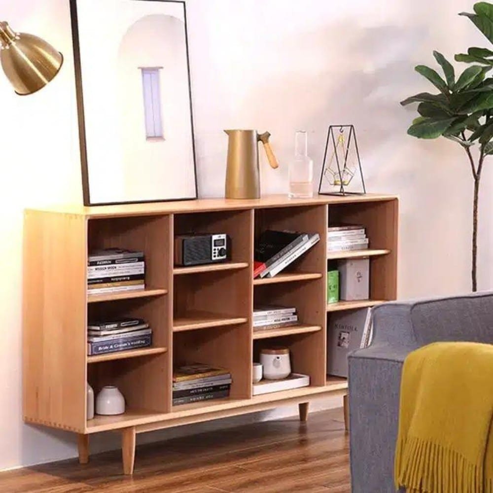 تتيح مكتبة كتب ومجلات لغرف المعيشة تخزين الأشياء والمستلزمات بشكل منظم وجميل، وتحتوي على العديد من المساحات التي تسهل التنظيم والترتيب، يمكن استخدامها كمكتبة أو وحدة تخزين لعرض القطع الفنية الزخرفية وتزيين الغرفة، مما يجعلها أكثر عملية ومتعددة الاستخدامات.