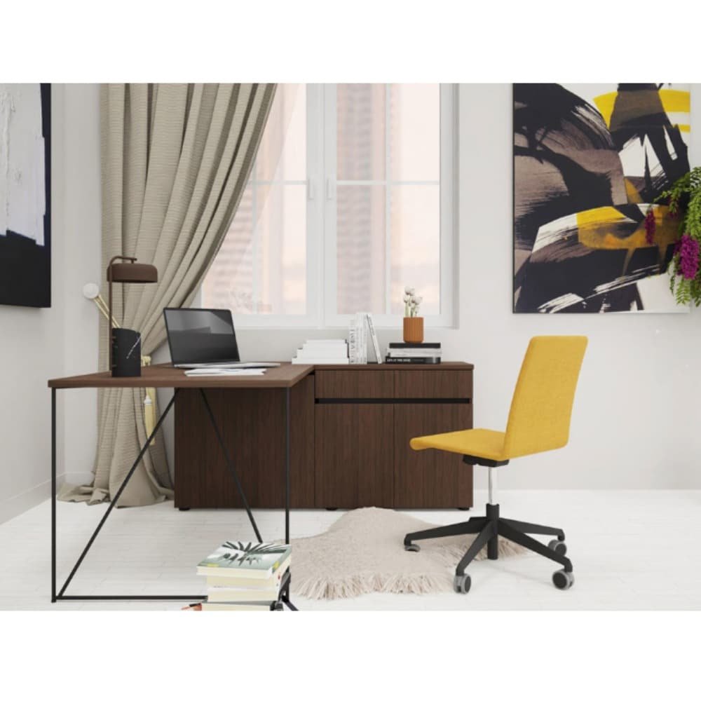 مكتب زاوية مزود بوحدة تخزين كبيرة لتخزين الأدوات وترتيب الأوراق بحرية دون القلق من ضيق المساحة مع اعطاء مساحة كافية بأسفل المكتب لحرية حركة الأرجل دون عوائق.