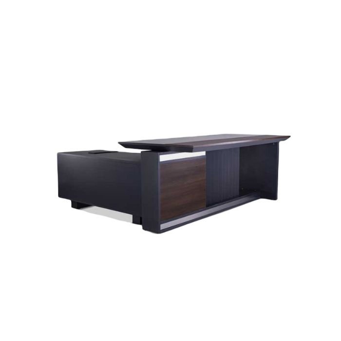 التصميم الفاخر: يتميز مكتب المدير بالتصميم الفاخر والأنيق. حيث يحتوي على تفاصيل جمالية لإضفاء لمسة فنية على المكتب فهو يتضمن وحدة أدراج متحركة يمكن تثبيتها في كلا الجانبين من المكتب بالإضافة إلى لوح من الأكريلك المضاد للكسر والخدش على سطح المكتب كما أن مساحة العمل واسعة لتوفر كامل الحرية أثناء أداء المهام الوظيفية للمدير.