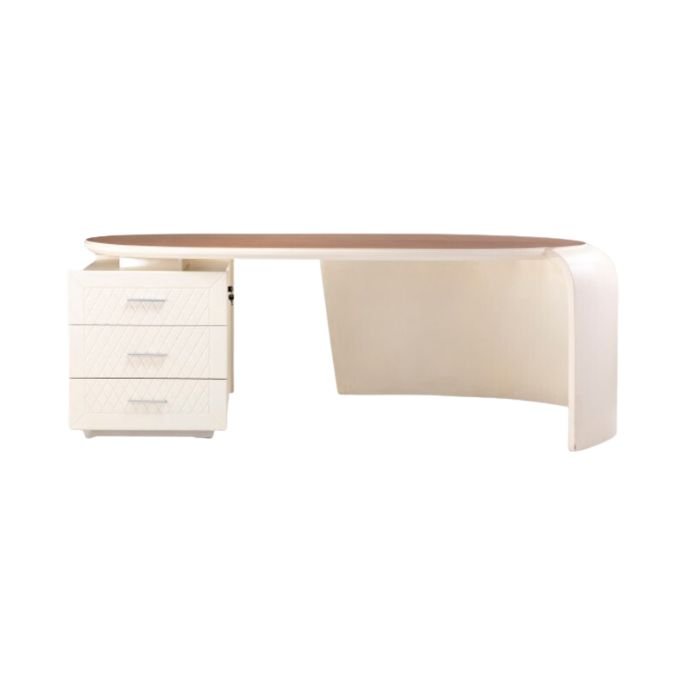 • ألوان المكتب: يتميز المكتب بألوان هادئة مريحة للعين في تناغم أنيق بين اللون البني الفاتح واللون البيج لتزداد أناقة المكتب ويصبح قطعة أثاث متميزة وفريدة من نوعها تبعث على الراحة والهدوء أثناء العمل مع التأكيد على ثبات اللون وعدم تغيره مع مرور الوقت والحفاظ كذلك على ثبات درجات الألوان.