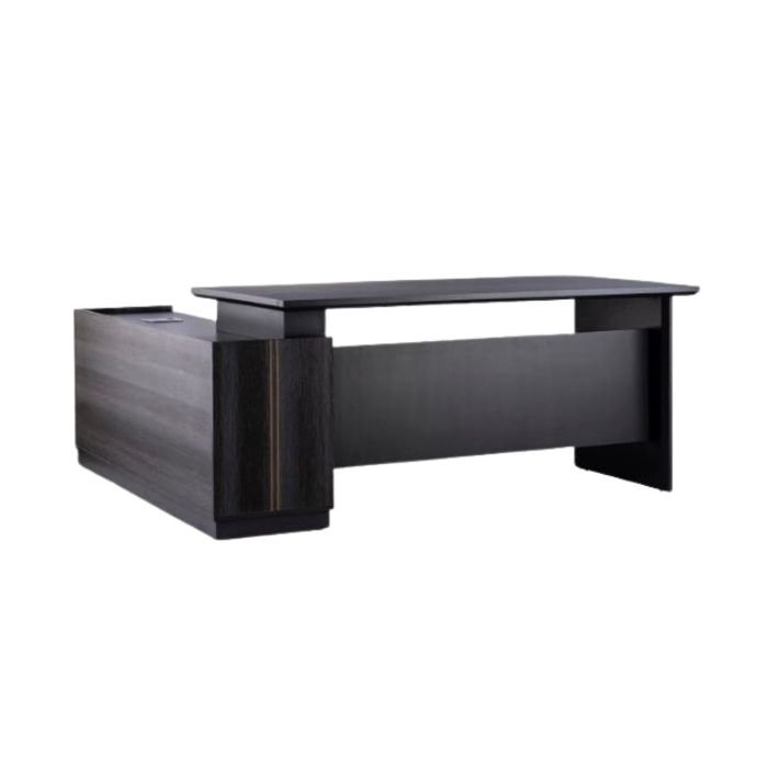 - مكتب مدير فخم مصنوع من خشب عالي الجودة، يتميز بقدرته على تحمل الاستخدام المكثف بشكل يومي.